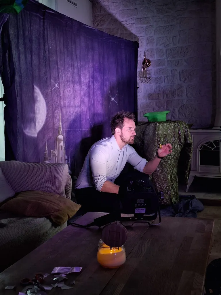 Ce spectacle interactif (plusieurs enfants sont invités sur scène, ceux qui restent assis sont régulièrement invités à réagir avec le magicien) à été spécialement pensé pour les enfants (rythme, dynamisme, jeu d’acteur, histoire), mais également pour que les adultes passent un moment agréable. Il est rythmé par la magie et les rires incluant quelques touches poétiques et touchantes. Je viens avec le fond de scène, le matériel nécessaire pour sonoriser le spectacle ainsi que les projecteurs.