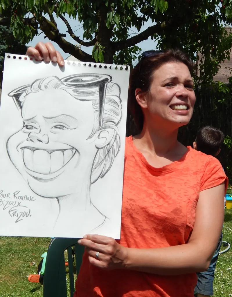 Vous cherchez une animation originale et conviviale pour vos séminaires, soirée d’entreprise, mariage, anniversaire ou tout autre évènement important ? Les caricatures de FRIZOU sont la solution! Animation conviviale et amusante, la caricature fédère vos convives dans une ambiance humoristique. Souvenirs personnalisés et exclusifs pour vos convives. Comment ça marche ? Je me déplace et vous croque en live. 1 caricature N&B = 1 personne = entre 5 et 10 minutes maximum Quel matériel ? Mes Mines graphites, mon papier blanc A3, de la bonne humeur et de l’huile de coude ! Il vous suffit de prévoir deux chaises et un coin suffisamment éclairé !