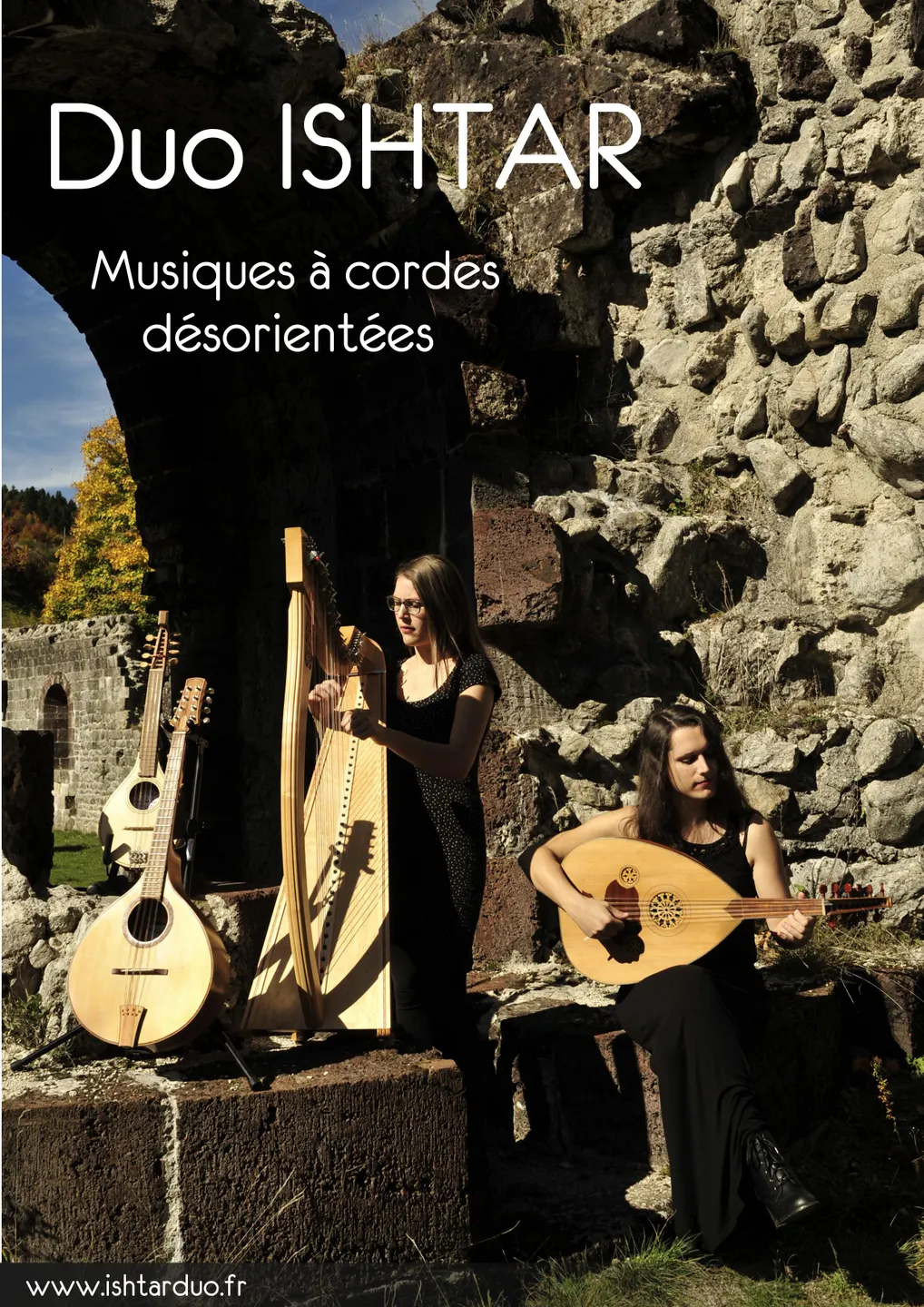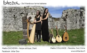 Deux jeunes musiciennes parcourent les chemins du Monde accompagnées des soixante-dix neuf cordes (dés)orientées de la harpe celtique, de la mandole, du oud, du cistre médiéval et du rabab afghan.