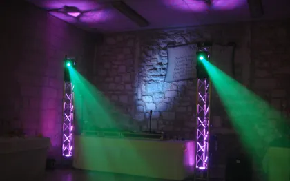 Il est aussi important de prendre en compte l'éclairage de votre piste de danse ainsi que de la salle de votre réception. C'est pour cela que je met tout en oeuvre pour vous proposez du materiel professionnel de qualité, pour assurer au show haut en couleurs !