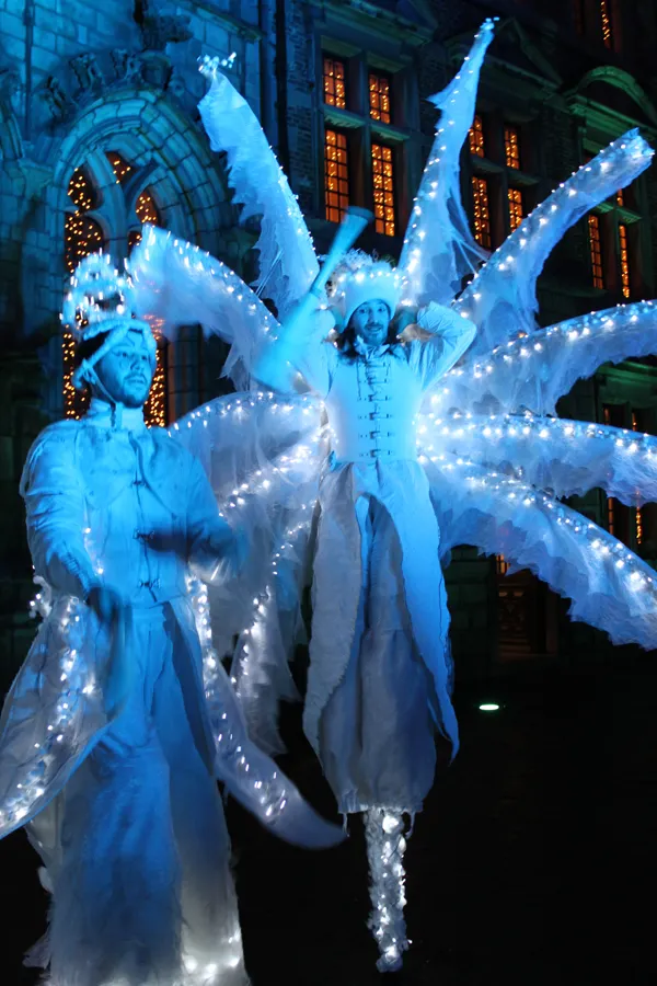 NOUVEAUTE 2019- Les Echassiers Lumineux déambulations ou spectacle architectural écologique pyromélodique en son & lumière (le 5ème Elément)