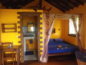 Il dispose de plusieurs bungalows « randonneurs » avec des sanitaires assez simples et d’autres bien plus chic, tout confort aménagés avec mobilier malgache, terrasse, hamac, eau chaude, moustiquaire et clim. Un petit chemin vous emmène a la plage en 5 minutes a travers la végétation sauvage des environs.